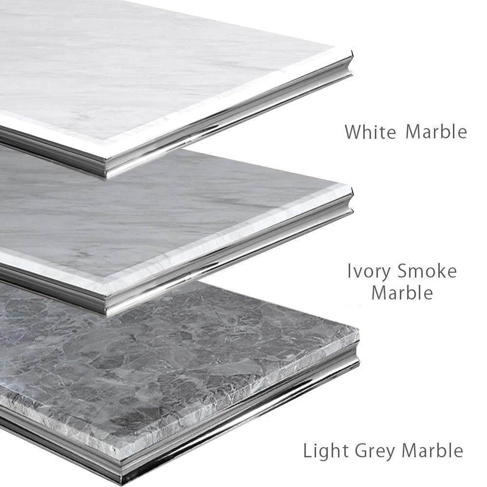 Ultra chic and glamorous, this contemporary dining table redefines high end living. Comprising of a beautiful marble or glass top which is complemented with polished stainless steel swooping base. Our marble and glass is incredibly hardwearing and scratch resistant. It’s pedestal base is solid and heavy weighing making it extremely sturdy. The sleek lines and smooth materials make the Arial easy to wipe clean and the perfect choice for a busy family.
