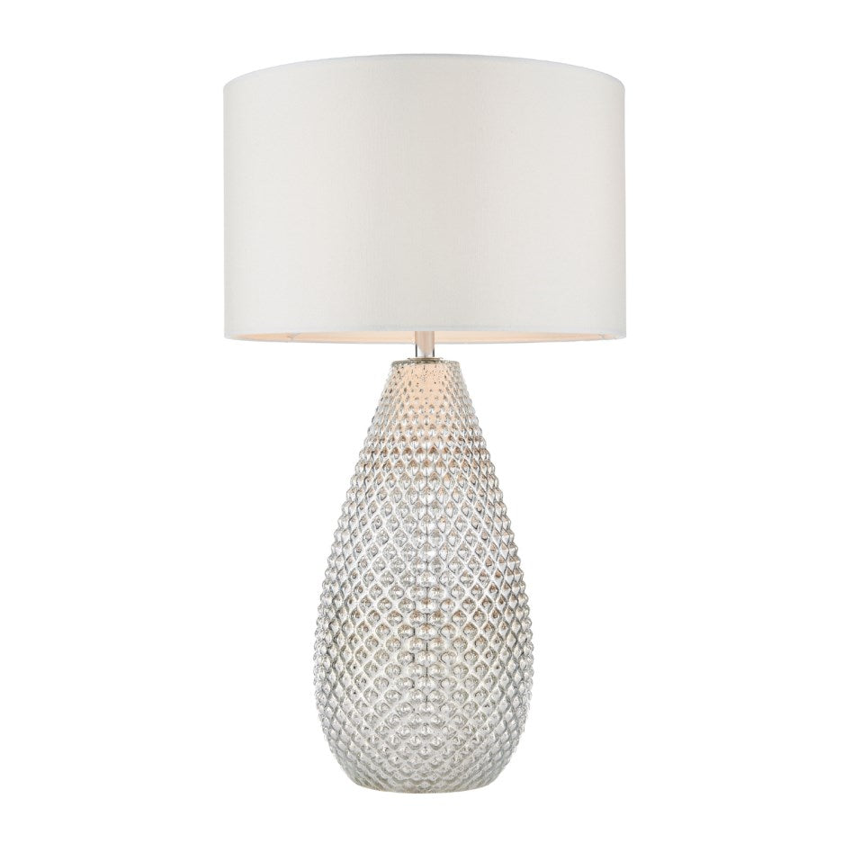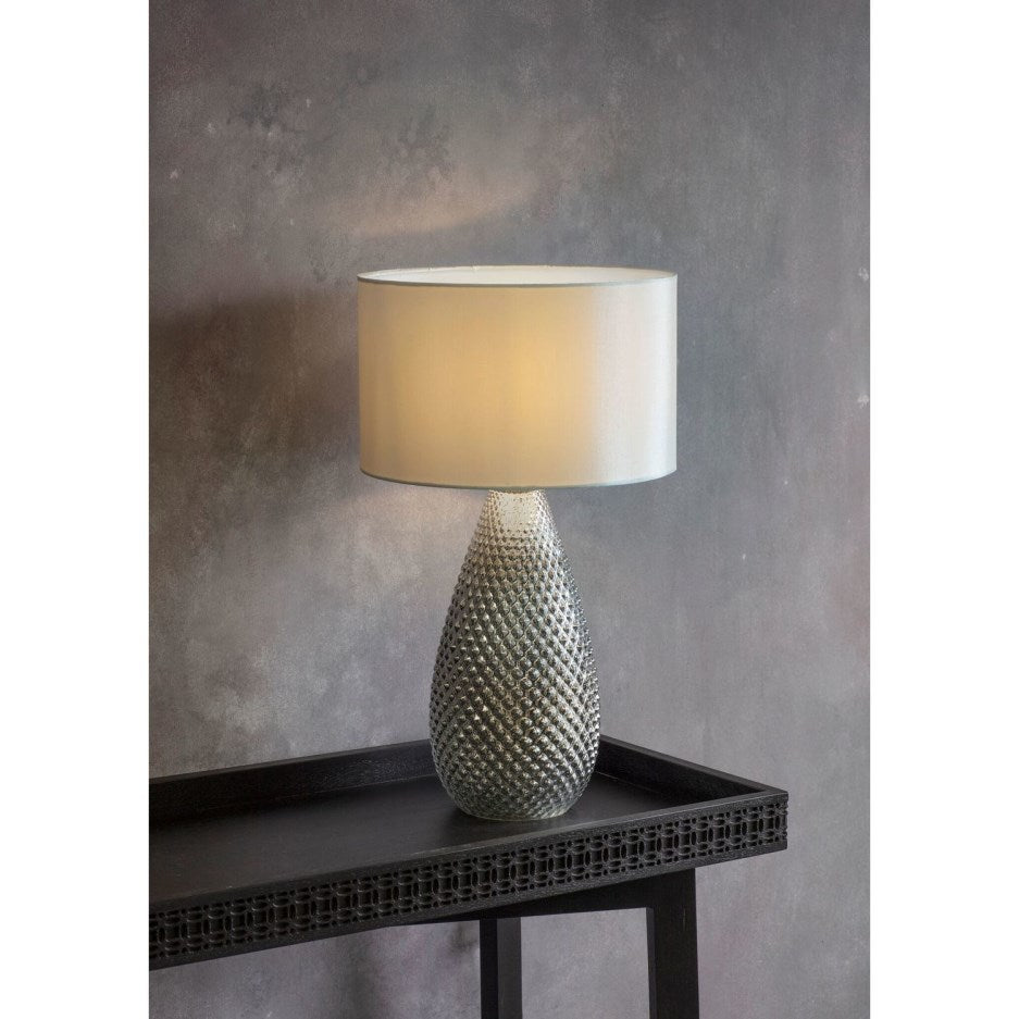 Table Lamp with White Faux Silk Shade & Mercury Glass Base - Livia
