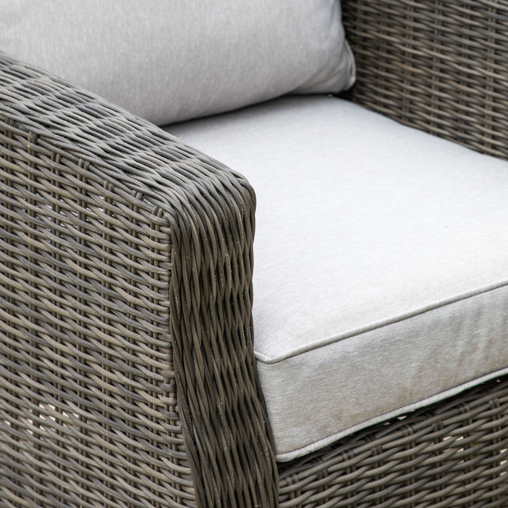 This Rectangle Dining Set Rising Table, which features a corner sofa, an ottoman, a stool and a riser table, is ideal for both eating and relaxing. The table offers an innovative design feature which allows it to be used as a dining table or it can be easily lowered for use as a coffee table. All pieces are crafted from all weather 5mm PE rattan with a hand woven mixed half round/full round weave in a washed grey finish. For comfort, the sofa, ottoman and stool have luxurious showerproof cushions in a soft grey colour to complement the colour of the rattan. The frames are powder coated aluminium and the table top is tempered glass. The set is also available in a natural finish. The collection offers a great range of pieces, so you can select the ones to suit your requirements.