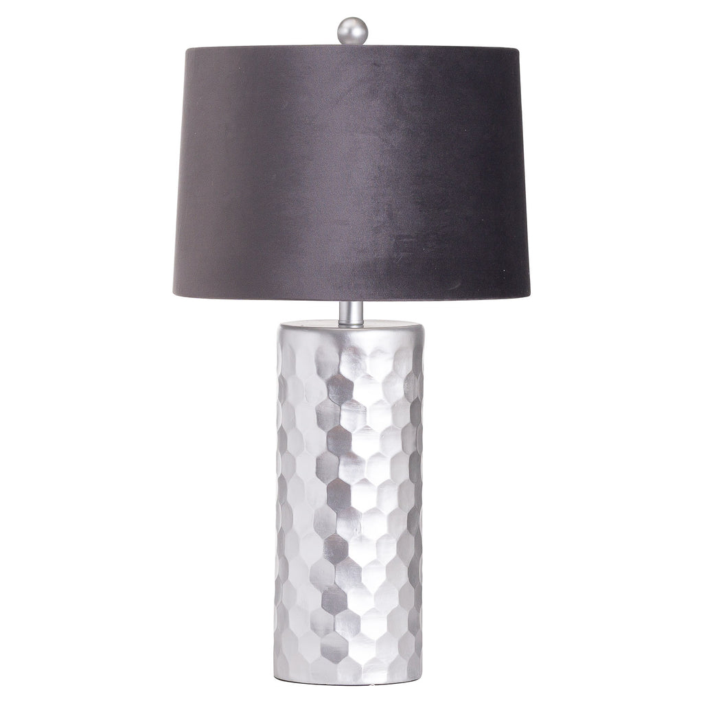 Honey Comb Silver Table Lamp With Grey Velvet Shade
